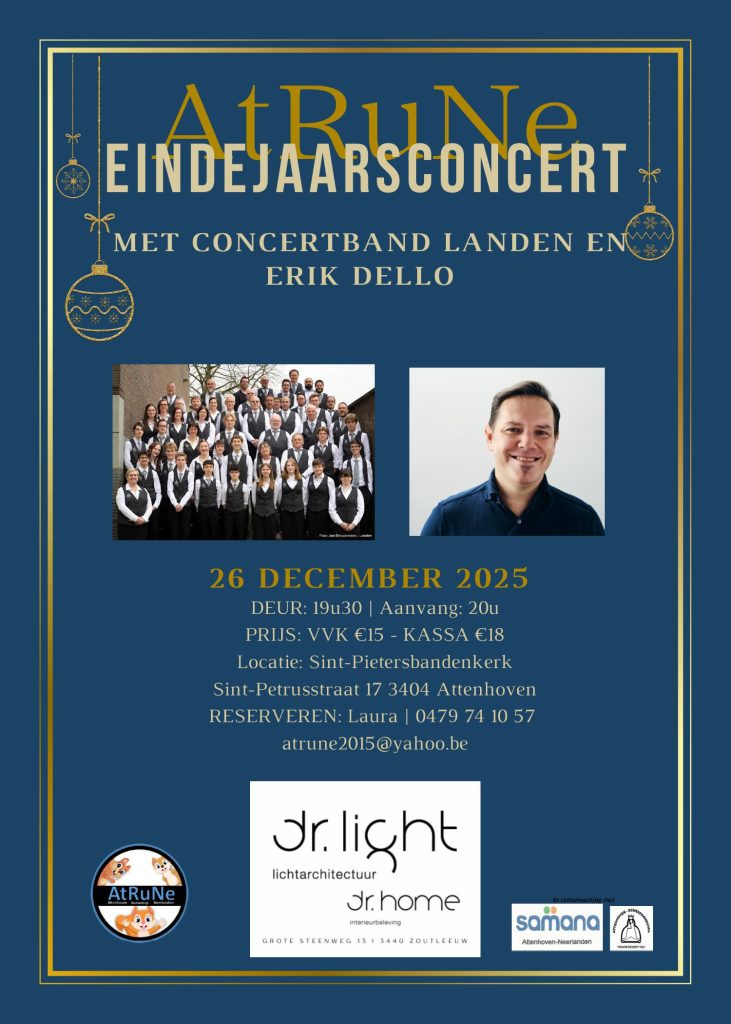 Eindejaarsconcert Op vrijdag 27/12/2024 organiseren we naar goede gewoonte een eindejaarsconcert in de kerk van Attenhoven. Je kan je inkomticket bestellen via [email protected] of 0479 74 10 57 (Laura).